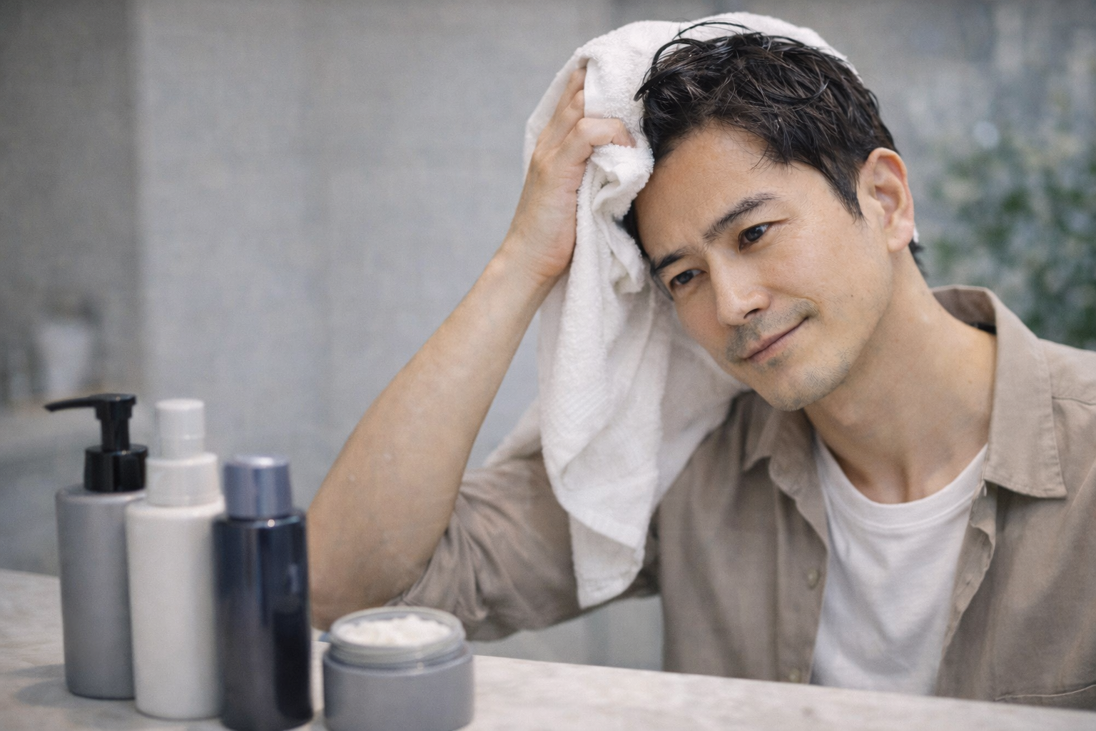 整髪料を使う日のアフターケアは、何かを足すというより、