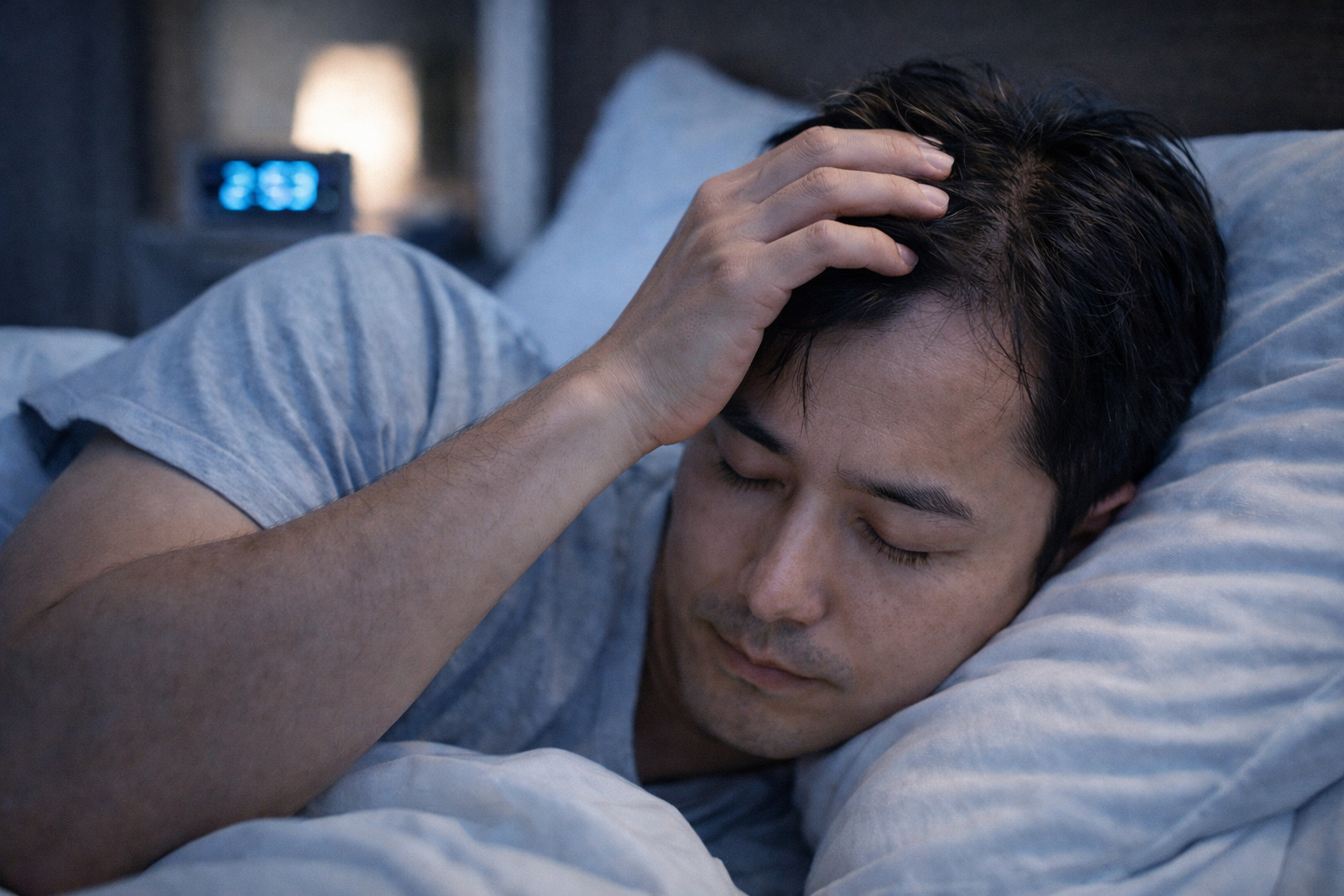 寝不足が続くと、朝起きたときに頭皮が重たく感じたり、